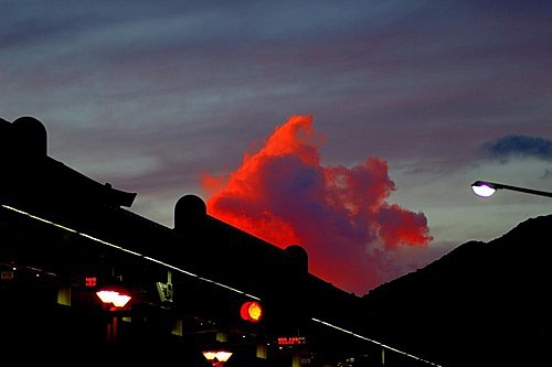 這是在捷運站後方的陽明山上方彩霞, 正在跳著精彩的火紅舞蹈