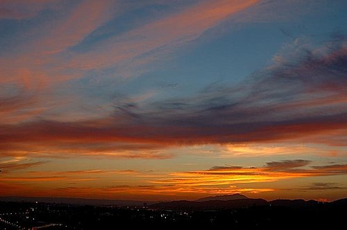 美麗的彩霞恰好在觀音山的頂端,加上城市的華燈初上景象,這難得的美景真叫人陶醉 !