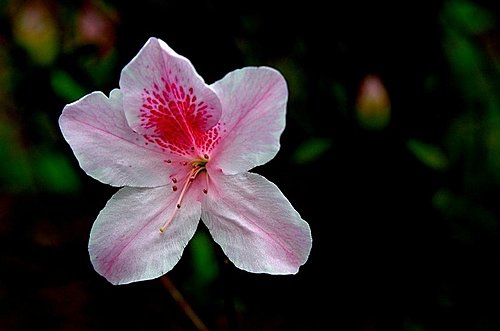 就在昨天想搭賞花專車上山, 也不在乎會有人山人海的賞花人潮, 但可能太久沒搭公車了, 等了半個小時後, 公車還是沒來的山上, 或許路線早就改了, 只好放棄上山了. 於是轉往公視的公園, 尋找開的並不多的杜鵑花, 整個公園唯我一人獨享, 架起三腳架, 全心專注於捕捉這美麗的身影. 其實在台北的街頭, 社區公園, 學校到處都有這美麗的花朵, 不一定要上陽明山才能欣賞它.