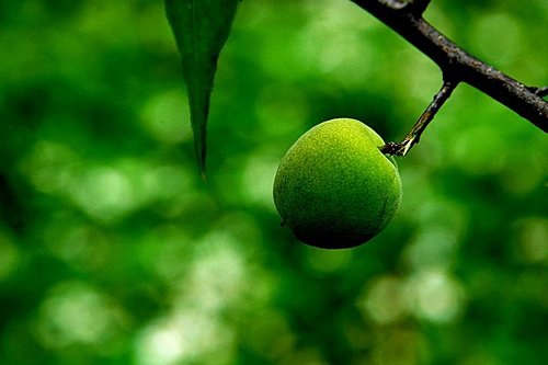 早在1月初即已花謝的梅花, 終於長成梅子, 讓人垂涎欲滴.