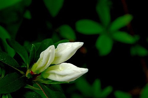 三朵含苞待放的白色杜鵑花正蓄勢待發的準備綻放它美麗燦爛的花開