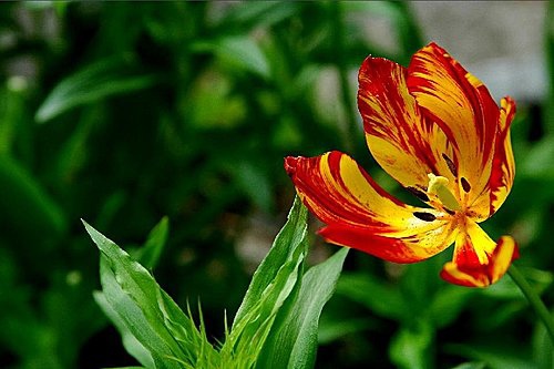 朵朵盛開的鬱金香, 正火紅的綻放著
