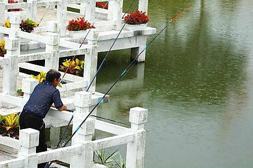 每到假日來到此地, 總有許多釣魚的人們, 拿著釣竿一字排開, 過著悠閒的一天, 而我的釣魚技術很差, 釣了很多次, 總是空手而歸. 當然來此散步, 也是最愉悅的時候, 看著優美的湖光山色, 踩著輕鬆的腳步, 呼吸著清新芬芳的空氣, 這是多麼美好的時光.