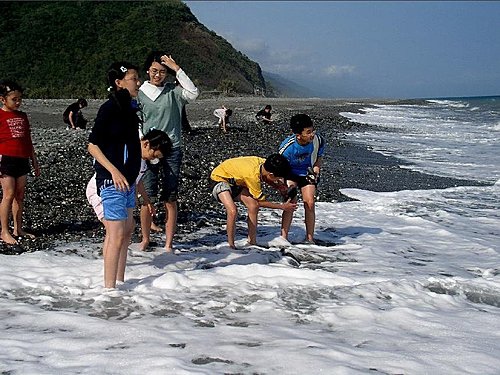 下午到達太麻里後, 走入太平洋的海灘, 我再度撫摸了這海水. 強勁的海浪拍打著海岸激起乳白色的浪花, 這種聽海看海的感覺, 真的每次都是一樣, 它讓每一個浮躁的心情沈澱下來, 讓狹隘的心胸寬廣起來. 大海的遼闊與高山的雄偉都是我的最愛, 此時我還記得世界三大海洋, 只缺大西洋讓我仍未看過也未摸過. 也讓我想起環遊世界的偉大理想仍有一大段要實現.繞過南迴公路, 到達屏東的楓港時, 我看到了在反射著耀眼陽光的台灣海峽, 這是一片我從南到北熟悉的海洋, 也曾留下我多次的足跡, 此時沿著海岸線往北走, 就可到達高雄. 這是第一次走屏東的南二高, 也是第一次走 88 號快速道路, 交通之便捷, 拉近了城鄉距離與快速的連結人與人之間的心.